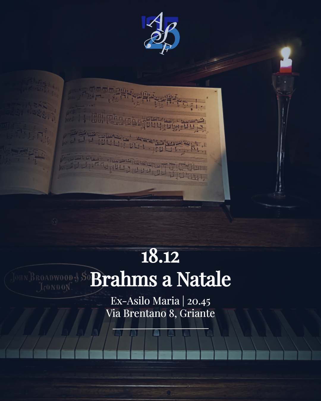 Il direttore artistico di Arte Solidale Danilo Mascetti e l'attrice Alessandra Fertitta uniscono le forze per l'ultimo concerto dell'anno di Arte Solidale, nella propria sede a Griante. Una serata dedicata alla musica pianistica di Brahms, in un dialogo con la parola, tra lettere, racconti e poesie a guidare il pubblico in una serata dai caratteri intimi ma appassionati. Dalle Ballate alle Sette Fantasie, il pubblico potrà ascoltare la più bella musica pianistica del compositore tedesco, incluse le Variazioni op 21 n. 1, di esecuzione non frequente. La parola accompagnerà il viaggio tra i vari brani ottocenteschi, con una selezione letteraria proposta specialmente per questo concerto dall'attrice stessa, grande collaboratrice di ASF. Il pianoforte Broadwood 1894 sarà come sempre il grande protagonista di questo evento, per una perfetta serata dai toni caldi e armoniosi in vista delle festività imminenti. Artistic Director Danilo Mascetti and actress Alessandra Fertitta unite for Arte Solidale’s final concert of the year, held at its venue in Griante.