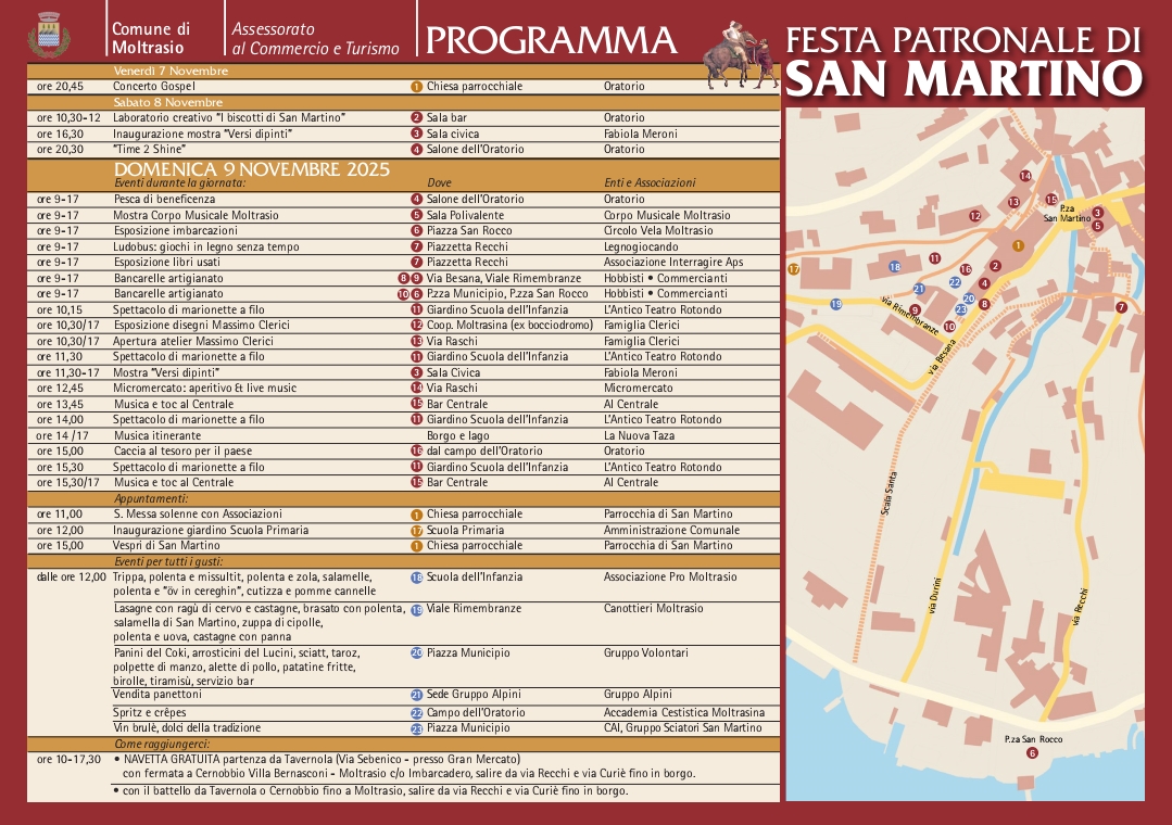 Il Comune di Moltrasio, in collaborazione con Associazioni ed Enti del paese, ha organizzato una festa ricca di iniziative, buon cibo, musica e attività per i più piccoli.